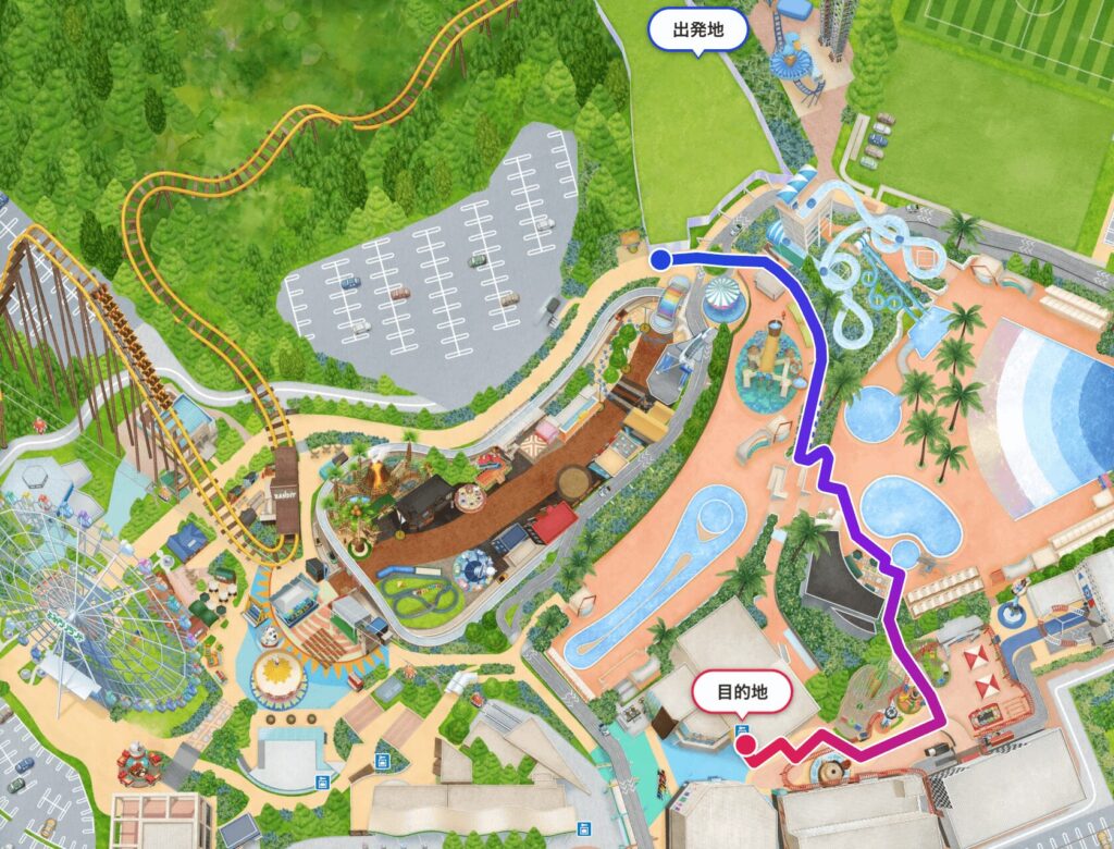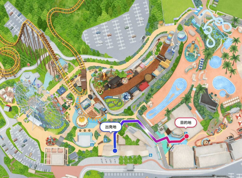 園内にあるコインロッカーは4ヶ所とも、よみうりランドの正面入り口の「正面入園口 スカイゲート」からすぐの位置にあるのですが、ポケパーク方面にあるコインロッカーは4番のBUNGUファクトリー入り口が一番近いです。