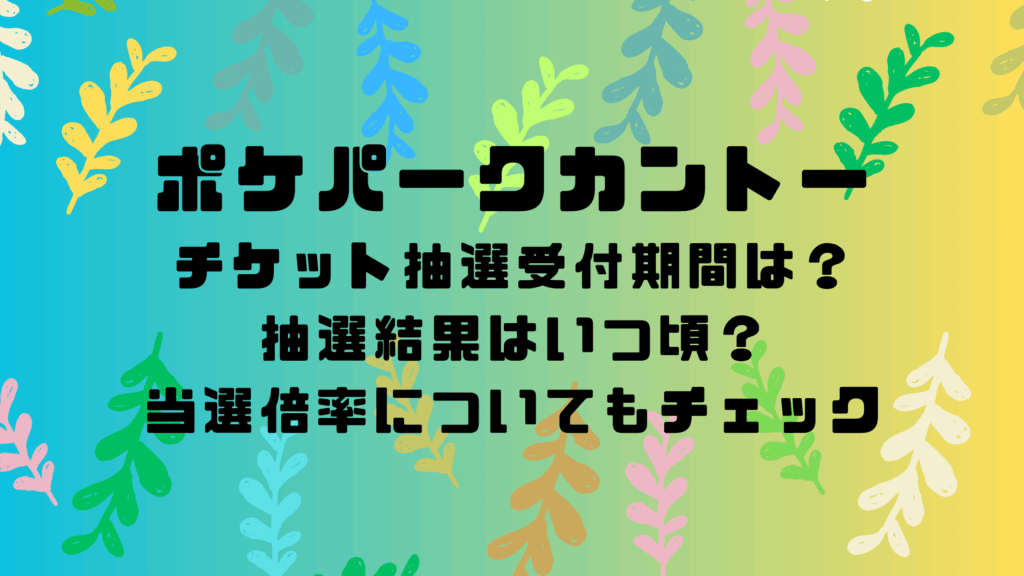 こちらの記事では、ポケパークカントーのチケット抽選受付期間とそのチケットの抽選結果はいつ発表されるのか、チケットの当選倍率はどのくらいなのかについてまとめています。